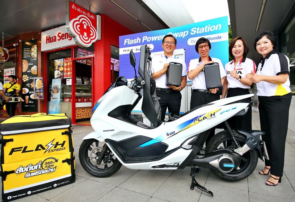 เอ.พี. ฮอนด้า ผู้นำวงการรถจักรยานยนต์ไทย พร้อมนำ Honda PCX Electric รถจักรยานยนต์ไฟฟ้ามาตรฐานโลก มาร่วมให้บริการจัดส่งพัสดุกับ Flash Express โดยยกโมเดลการสับเปลี่ยนแบตเตอรี่ (Batter Swapping) มาใช้เพื่อเพิ่มประสิทธิภาพและความรวดเร็วในการเติมพลังงานให้กับรถ โดยการสนับสนุนจาก บริษัท ปตท. น้ำมันและการค้าปลีก จำกัด (มหาชน) หรือ OR ติดตั้งจุดสับเปลี่ยนแบตเตอรี่ที่สถานีบริการน้ำมัน PTT Station ในเขตกรุงเทพมหานคร เริ่มดำเนินการในเขตลาดพร้าวเป็นเขตแรกภายในเดือนตุลาคมนี้ ณ สถานีบริการน้ำมัน PTT station สาขาลาดพร้าว