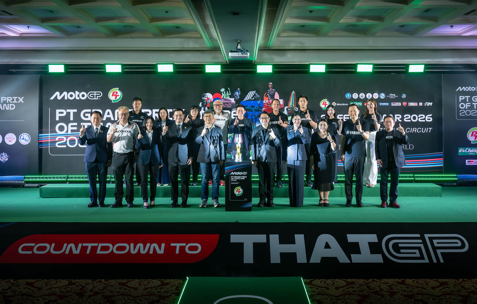 กระทรวงการท่องเที่ยวและกีฬา โดยการกีฬาแห่งประเทศไทย ผนึกกำลังพันธมิตรภาครัฐและเอกชน แถลงข่าวนับถอยหลังการแข่งขันรถจักรยานยนต์ชิงแชมป์โลก “โมโตจีพี” ประจำปี 2569  รายการ “พีที กรังด์ปรีซ์ ออฟ ไทยแลนด์ 2026” (PT Grand Prix of Thailand 2026) ซึ่งประเทศไทยยังคงได้รับความไว้วางใจให้เป็นเจ้าภาพสนามเปิดฤดูกาลต่อเนื่องเป็นปีที่ 2 พร้อมรับหน้าที่สนามทดสอบก่อนเปิดฤดูกาล (Pre-Season Test) ระหว่างวันที่ 21–22 ก.พ. และการแข่งขันสนามแรกของฤดูกาล ระหว่างวันที่ 27 ก.พ. – 1 มี.ค. 2569 ที่ สนามช้าง อินเตอร์เนชั่นแนล เซอร์กิต จังหวัดบุรีรัมย์ ตอกย้ำศักยภาพไทยในเวทีโลก พร้อมสร้างแรงกระเพื่อมทางเศรษฐกิจ การท่องเที่ยวต่อเนื่องทั่วประเทศ และประสบการณ์ระดับโลกให้แฟนมอเตอร์สปอร์ต พร้อมไฮไลต์สำคัญกับการเผยโฉม ‘โทรฟี่โมโตจีพี สนามประเทศไทย” งานออกแบบเชิงสัญลักษณ์ระดับโลก เปรียบเสมือนคบเพลิงแห่งการเปิดศักราชใหม่ ถ่ายทอดบทบาทประเทศไทยในฐานะสนามเปิดฤดูกาล ผสานอัตลักษณ์ไทยผ่าน Track Layout สนามช้างฯ สีธงชาติไทย และผ้าลายพระราชทาน “สิริวชิราภรณ์” สะท้อนพลังวัฒนธรรมท้องถิ่นที่หลอมรวมกับเวที World Grand Prix อย่างสง่างาม