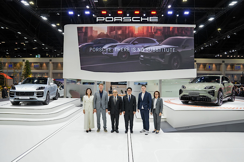 ปอร์เช่ ประเทศไทย สร้างความเร้าใจบนเวทีบางกอก อินเตอร์เนชั่นแนล มอเตอร์โชว์ ครั้งที่ 47 ตั้งแต่วันนี้ถึง 5 เมษายน 2569 ณ อิมแพค ชาเลนเจอร์ ฮอลล์ 1-3 เมืองทองธานี ด้วยการเปิดตัวรถยนต์เอสยูวีไฟฟ้าอย่างเต็มรูปแบบรุ่นล่าสุด ครั้งแรกในเอเชียตะวันออกเฉียงใต้ โดยจัดแสดงคาเยนน์ เทอร์โบ อิเล็กทริค (Cayenne Turbo Electric) พร้อมด้วยรุ่นในตระกูลเดียวกันอย่างคาเยนน์ เอส อี-ไฮบริด คูเป้ (Cayenne S E-Hybrid Coupé) รุ่นปรับโฉมปี 2026 ที่ประกอบในภูมิภาค ปอร์เช่ ประเทศไทย ยังพร้อมนำเสนอผลงาน “There is No Substitute.” ถ่ายทอด 5 มิติของความหลงใหลในปอร์เช่ ผ่าน 5 มุมมองจากผู้ขับขี่และรักในแบรนด์ สะท้อนเหตุผลว่าทำไมไม่มีสิ่งใดสามารถแทนปอร์เช่ได้ รวมทั้งภายในบูธยังจัดแสดงยนตรกรรมปอร์เช่หลากหลายรุ่น พร้อมข้อเสนอพิเศษทั้งภายในงานและตัวแทนจำหน่ายปอร์เช่อย่างเป็นทางการทั่วประเทศ