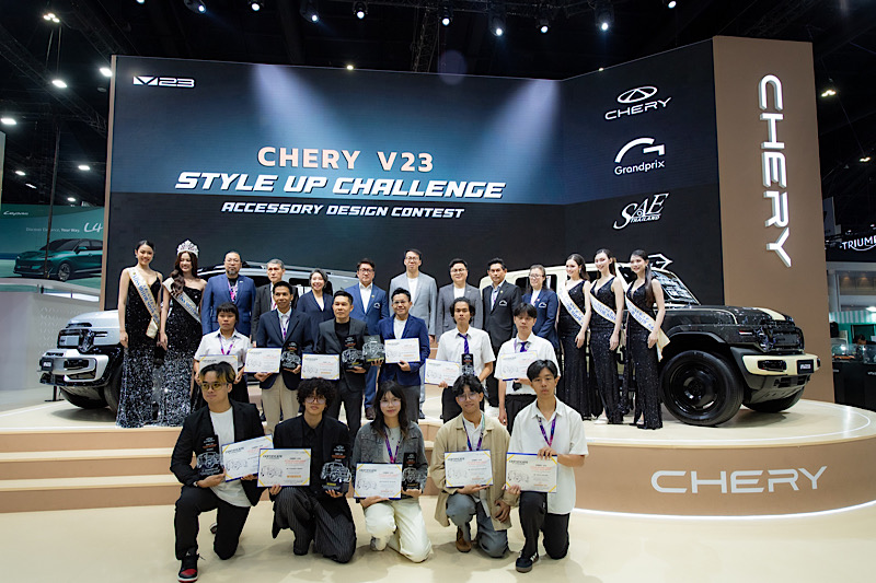 เชอรี ประเทศไทย ร่วมกับ สมาคมวิศวกรรมยานยนต์ไทย บริษัท กรังด์ปรีซ์ อินเตอร์เนชั่นแนล จำกัด (มหาชน) และสมาคมผู้สื่อข่าวรถยนต์และรถจักรยานยนต์ไทย(สรยท.) จัดพิธีมอบรางวัลโครงการประกวดออกแบบอุปกรณ์ตกแต่งรถยนต์ “Chery V23 Style Up Challenge” อย่างเป็นทางการ ณ บูธรถยนต์ CHERY ภายในงาน บางกอก อินเตอร์เนชั่นแนล มอเตอร์โชว์ ครั้งที่ 47 อาคารชาเลนเจอร์ 1–3 อิมแพ็ค เมืองทองธานี เมื่อวันที่ 5 เมษายน 2569 ท่ามกลางบรรยากาศคึกคัก โดยมีผู้บริหาร พันธมิตรในอุตสาหกรรม และสื่อมวลชนร่วมเป็นสักขีพยาน